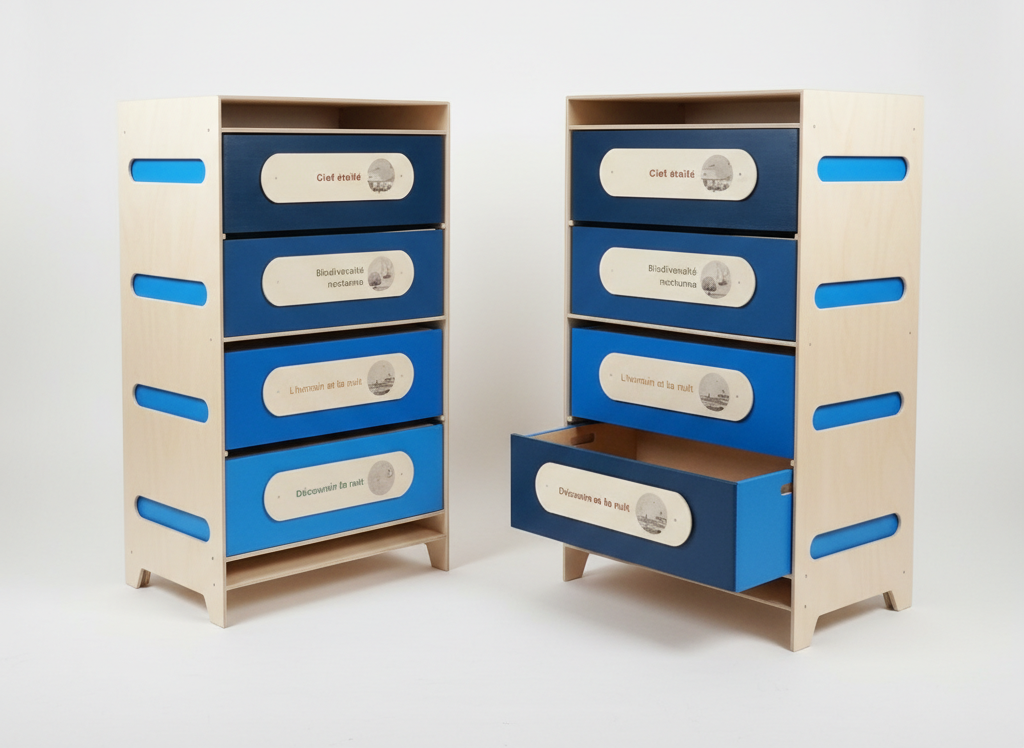 Nos autres réalisations Outils pédagogiques – Conception et fabrication de malles Dans le cadre de partenariats avec le REEL48 – CPIE, le PNR Aubrac et le PNC, La Pompe a conçu et fabriqué des malles pédagogiques sur mesure, dédiées à la sensibilisation environnementale et culturelle. Le projet Créer des outils pédagogiques fonctionnels, transportables et durables, adaptés à des usages variés sur le terrain. Objectifs Faciliter la transmission des savoirs Proposer des supports robustes et adaptés aux publics Valoriser les contenus pédagogiques existants Inscrire la fabrication dans une démarche durable Réponse de l’atelier Des malles conçues à partir de matériaux durables, combinant fabrication artisanale et prototypage numérique.Le design privilégie la modularité, la lisibilité et la facilité de transport, tout en mettant en valeur le savoir-faire local. Livrables Conception des malles Fabrication sur mesure Adaptation aux usages pédagogiques Partenaires : REEL48 – CPIE / Parc naturel régional de l’Aubrac / Parc national des Cévennes L’expertise La Pompe Ce projet reflète l’engagement de La Pompe pour l’éducation, la transmission des savoirs et le développement durable, à travers une collaboration étroite avec les acteurs du territoire. Nos autres réalisations